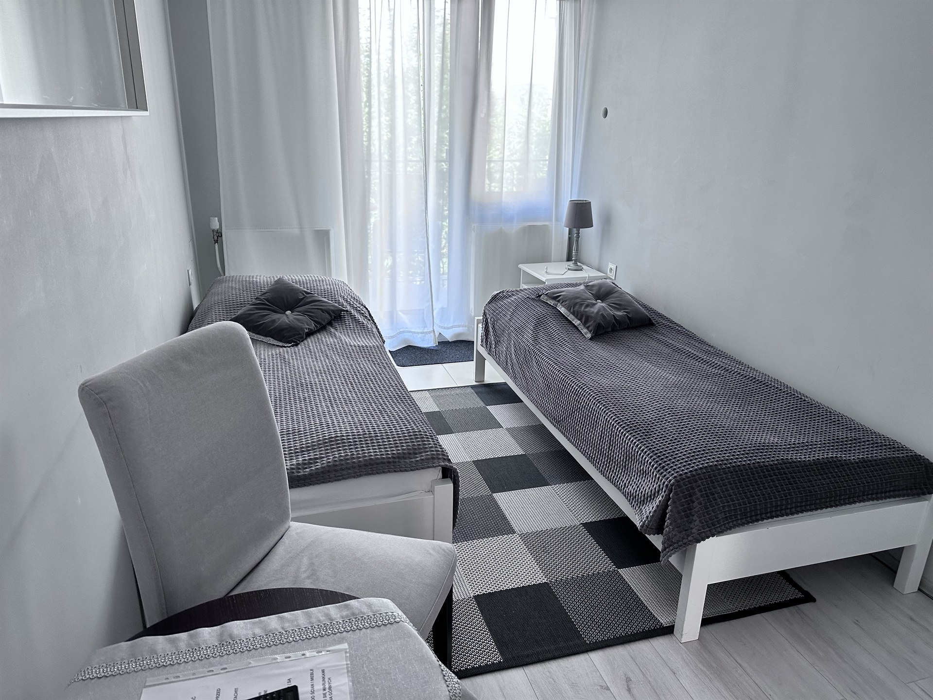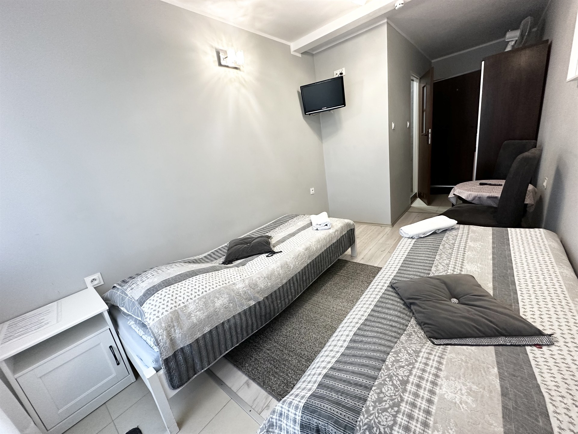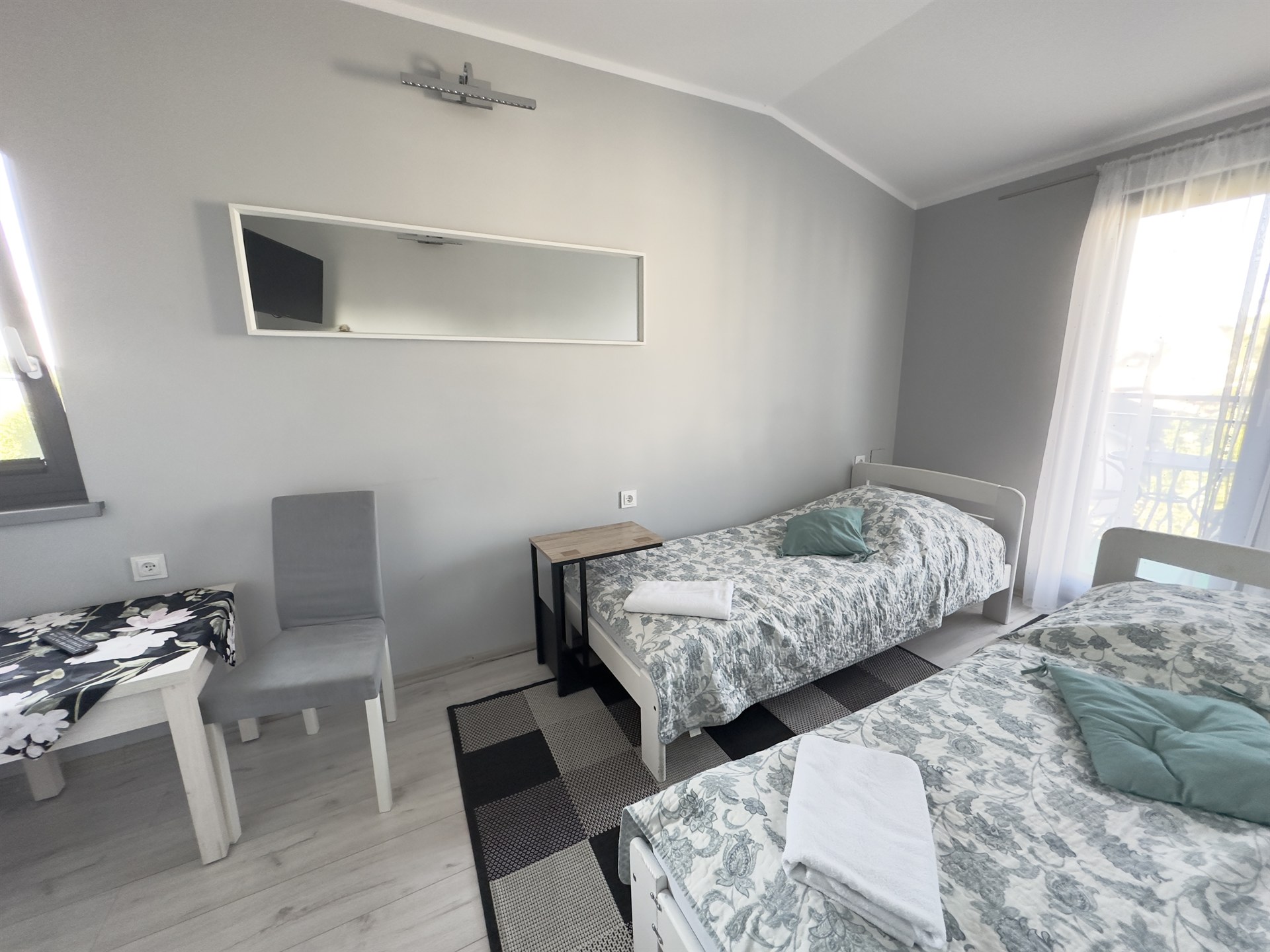 Oferujemy komfortowe pokoje dwuosobowe z prywatnymi łazienkami, wyposażone w:
